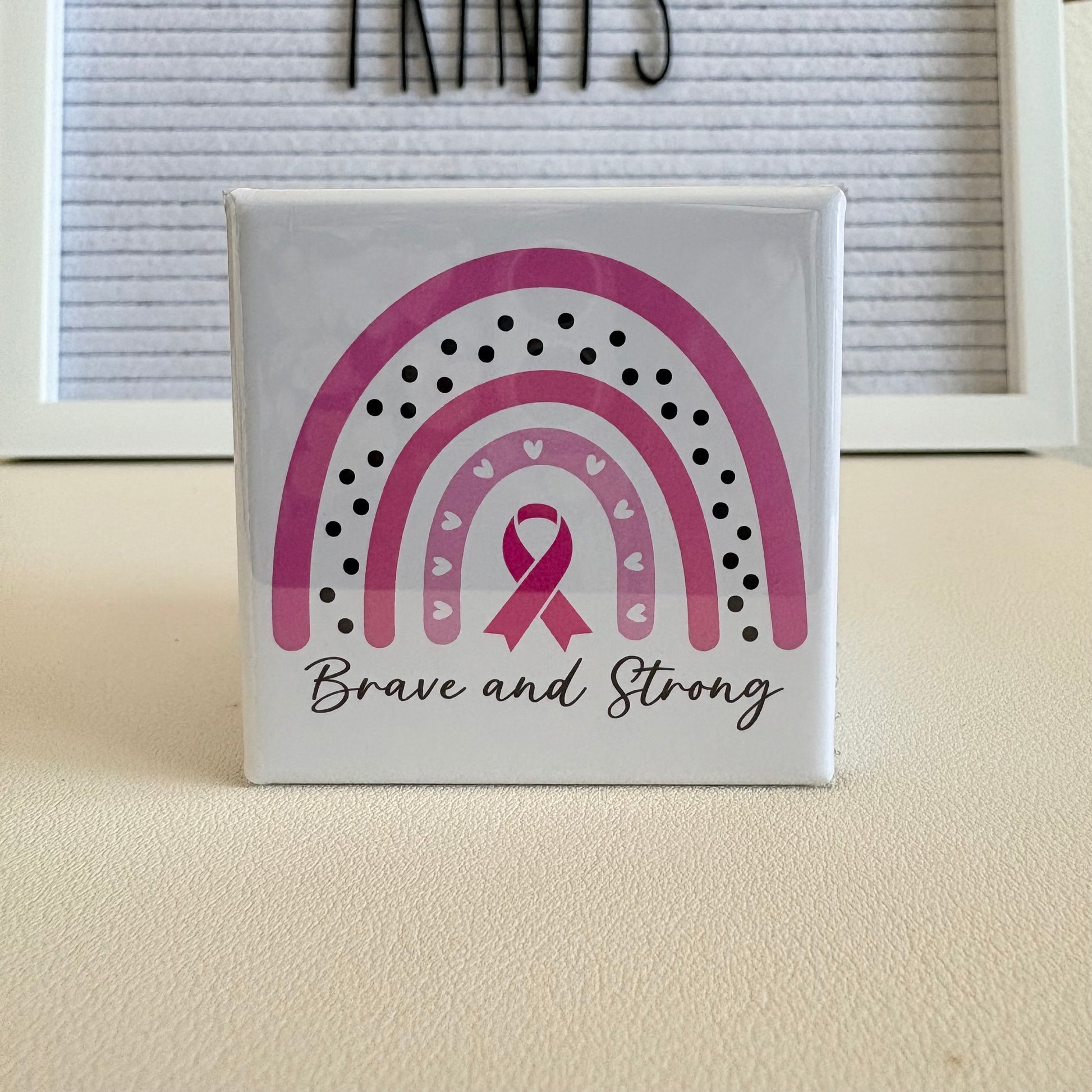 Celebrate strength and hope with our “Brave and Strong Rainbow” pin or magnet. Each one is 2”x2” and handmade with love to raise awareness and honor the fighters, survivors, and those we remember. Perfect for gifts, your fridge, or showing support year-round.
