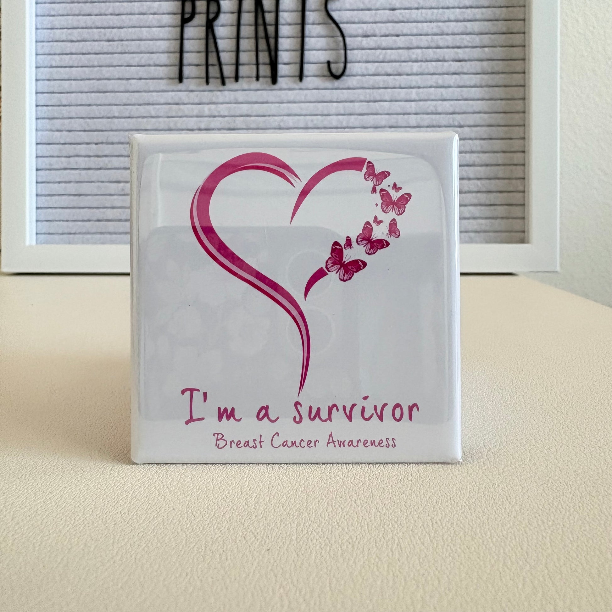 Celebrate strength and hope with our “I’m A Survivor” pin or magnet. Each one is 2”x2” and handmade with love to raise awareness and honor the fighters, survivors, and those we remember. Perfect for gifts, your fridge, or showing support year-round.